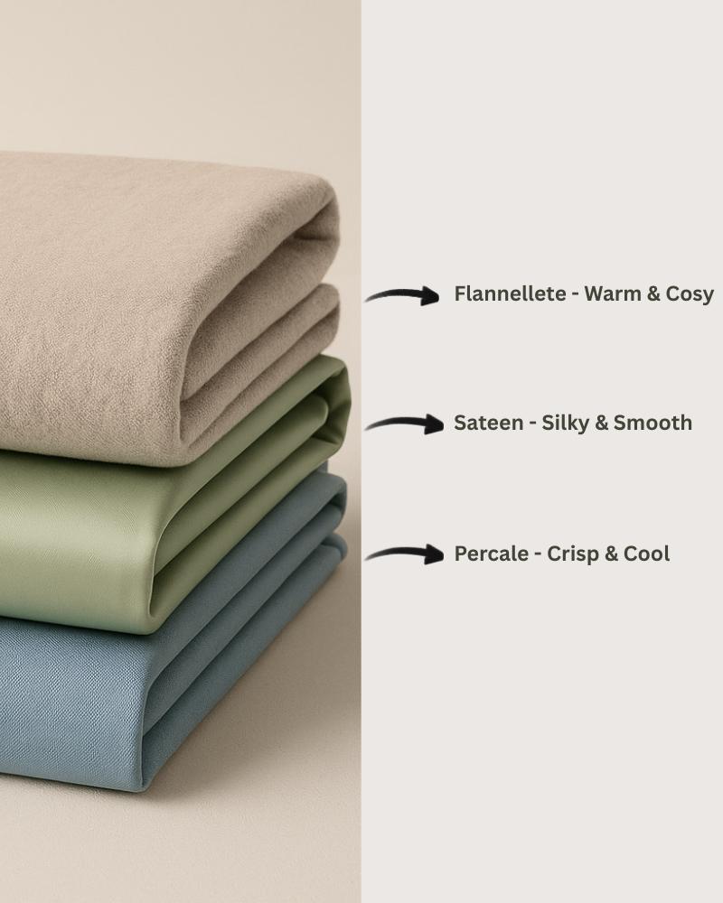 - Flannelette: Brushed and cosy, perfect for winter warmth and snuggly nights.